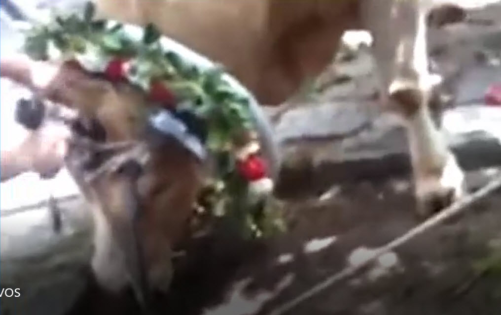 Δείτε και πως “δουλεύει το αναισθητικό” πιστόλι. τέσσερες σφαίρες στο κεφάλι με 45 αρι, Το ζώο μουγκρίζει από πόνο και κανείς δεν μπαίνει μπροστά να το σώσει. Η κοιλιά τους πάνω από ηθική πάνω από συμπόνια. Αηδιάσαμε!!!