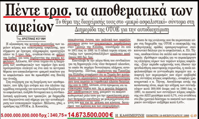 ΜΟΝΟΙ ΣΑΣ ΤΑ ΦΑΓΑΤΕ ΟΛΑ!!!!! ΕΠΙΝΟΗΣΑΤΕ ΚΑΙ ΕΦΑΡΜΟΣΑΤΕ ΠΡΟΜΕΛΕΤΗΜΕΝΑ ΤΙΣ ΑΠΑΤΕΣ ΣΑΣ, ΜΕ ΝΤΟΚΟΥΜΕΝΤΑ. 5 ΤΡΙΣ ΔΡΑΧΜΕΣ (= 14,7 ΔΙΣ ΕΥΡΩ) ΜΟΝΟ ΑΠΟ ΤΑ ΑΠΟΘΕΜΑΤΙΚΑ ΤΩΝ ΑΣΦΑΛΙΣΤΙΚΩΝ ΤΑΜΕΙΩΝ ΚΑΙ ΠΕΡΙΠΟΥ ΑΛΛΑ ΤΟΣΑ, ΑΠΟ ΤΙΣ ΔΗΜΟΣΙΕΣ ΕΠΙΧΕΙΡΗΣΕΙΣ, ΜΟΝΟ ΑΠΟ ΤΗ ΚΟΜΠΙΝΑ ΤΗΣ ΧΡΗΜΑΤΙΣΤΗΡΙΑΚΗΣ ΦΟΥΣΚΑΣ.