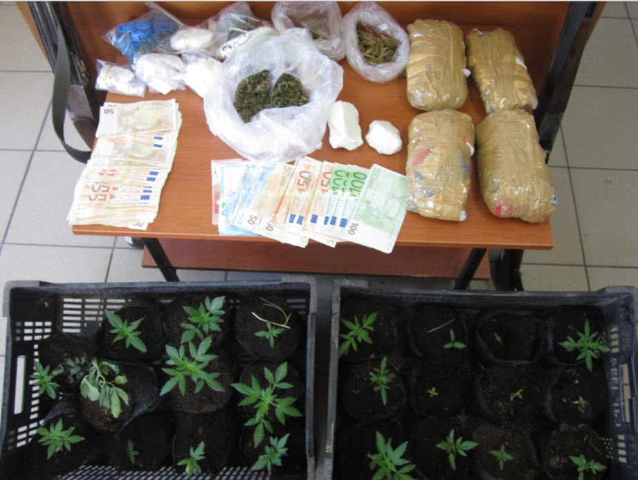 Κατασχέθηκαν, μεταξύ άλλων, ποσότητες κάνναβης και κοκαΐνης, δενδρύλλια κάνναβης, 4 οχήματα, 5 ζυγαριές ακριβείας, κυνηγετικά όπλα, κροτίδες και χρήματα
