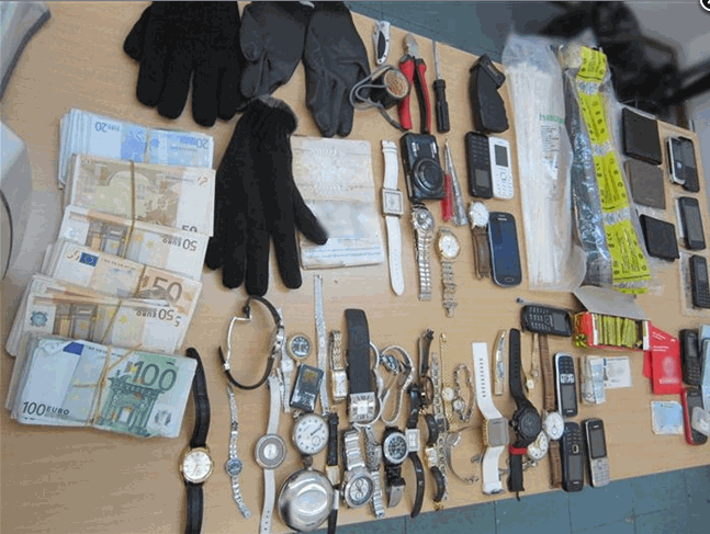 >Πολλά τιμαλφή, ηλεκτρονικές συσκευές, κινητά τηλέφωνα και κάρτες sim που χρησιμοποιούσαν οι δράστες.