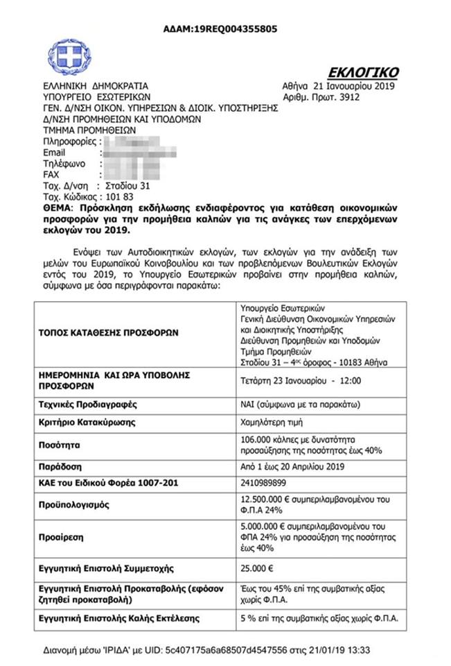 Πρόσκληση εκδήλωσης ενδιαφέροντος για κατάθεση οικονομικών προσφορών για την προμήθεια εκλογικών φακέλων για τις ανάγκες των επερχόμενων εκλογών του 2019. Ενόψει των Αυτοδιοικητικών εκλογών, των [more…]